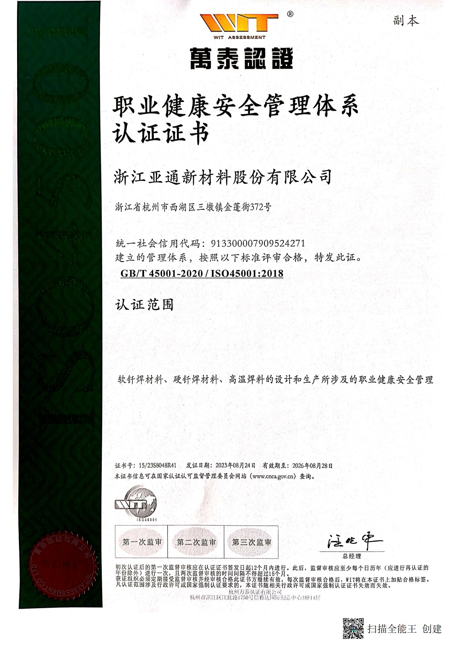 2011年建成“浙江省釬焊材料與技術重點實驗室”;被評為“最具成長型中小工業企業”;榮獲“杭州市優秀新產品新技術一等獎”;開發鋁基釬料粉體;開發預成型釬料